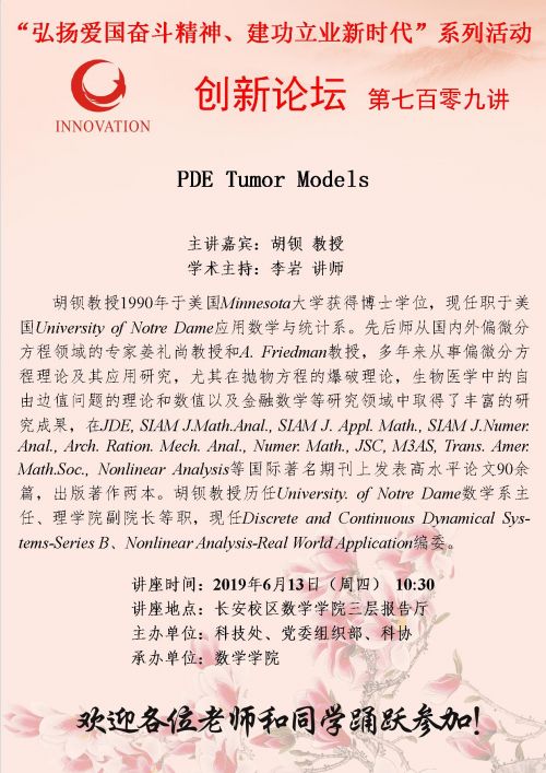 必赢国际437官网创新论坛第七百零九讲:PDE Tumor Models